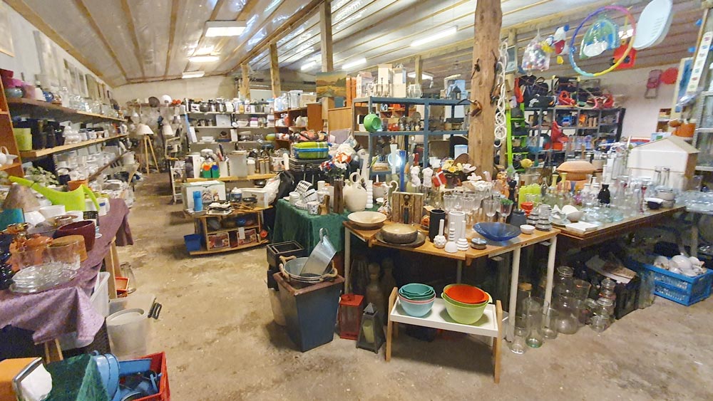 På butikkens hylder vil du finde radio/TV, lamper, værktøj, isenkram, børnetøj og mindre møbler - masser af fine ting.
